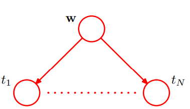 다항 계수의 벡테 w와 관측된 데이터 t = (t1 , ... , tN)^T 가 존재한다.